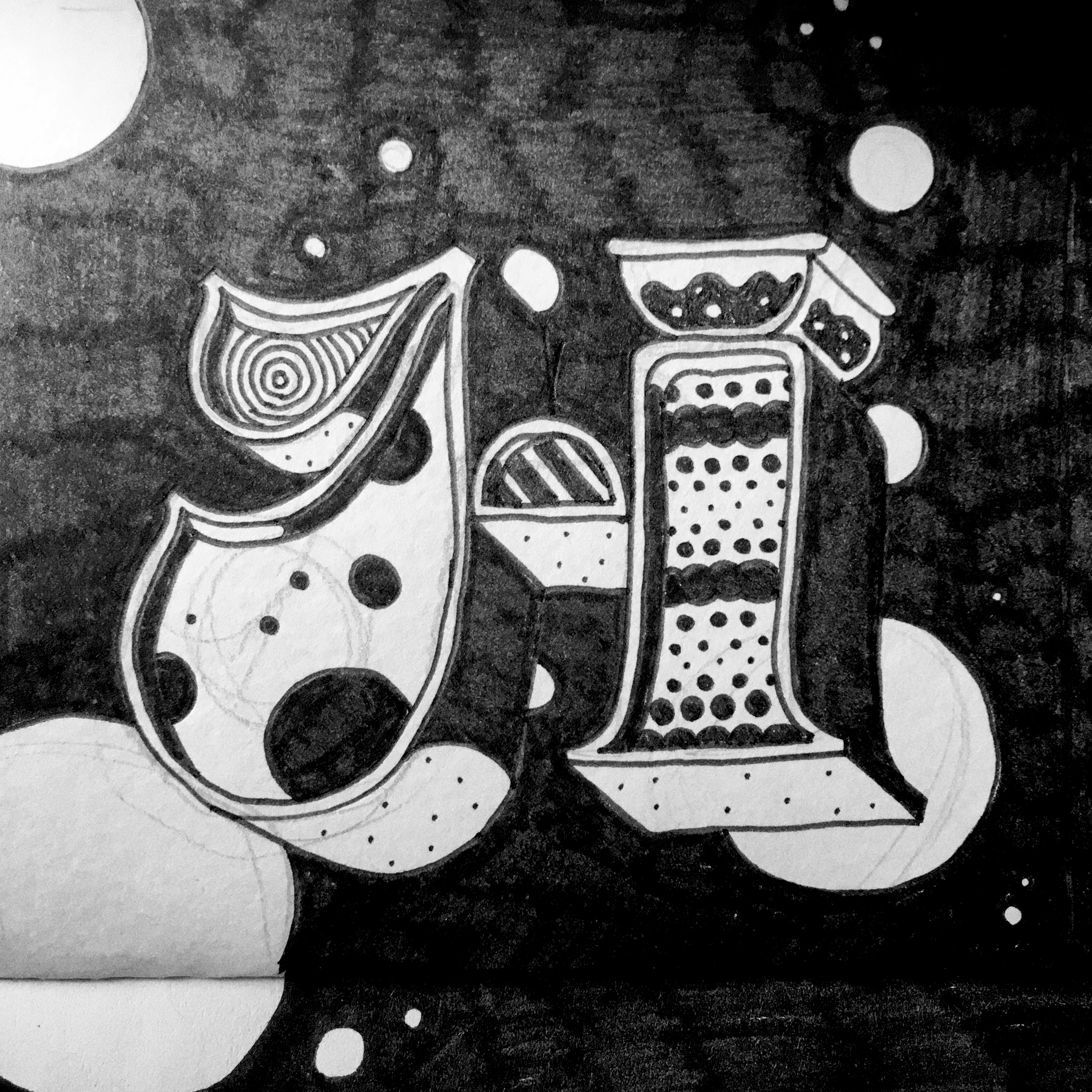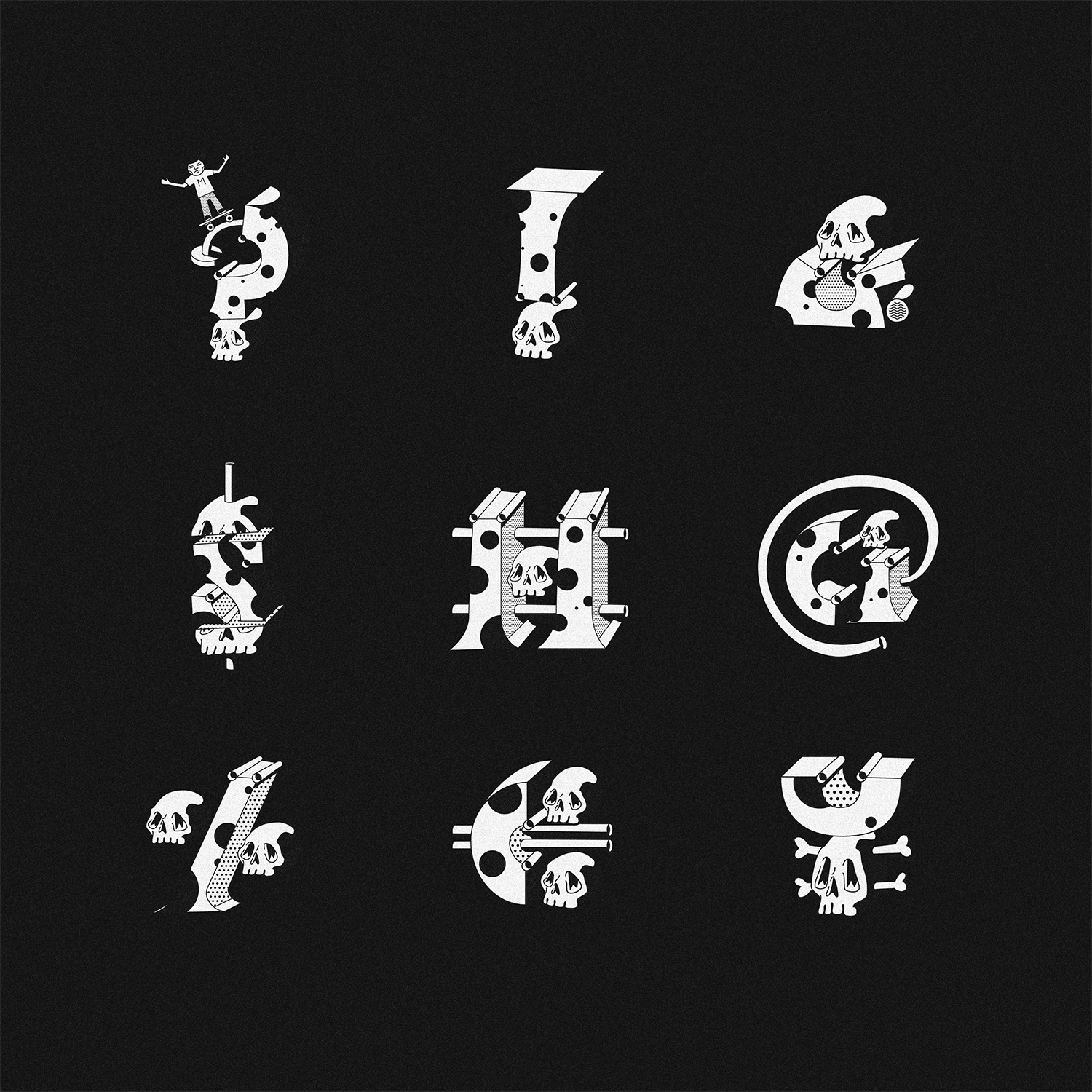 . What started out as an innocent signpainting inspired ‘A’ slowly morphed into deconstructed letters made of skulls, quarter pipes and the occasional skater.